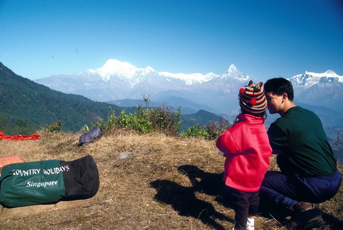 In the daytime, we trampled along the foothills with our Sherpas as guides. I preferred walking through the forest away from the heat of the blazing sun while the kids enjoyed greeting the villagers as we passed by their homes. At times, with the clear view, we stood in awe admiring the majestic Annapurna ranges, with the most prominent peak commonly known as the “Fishtail “for its shape.