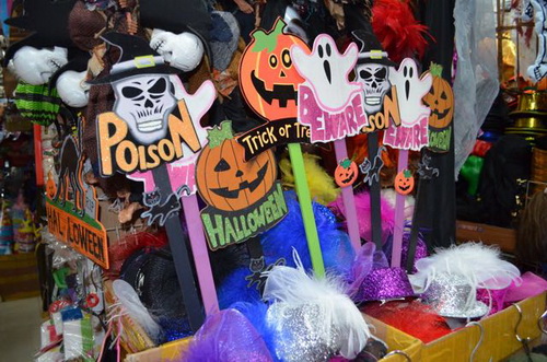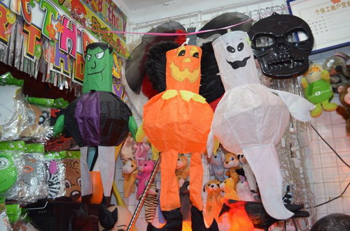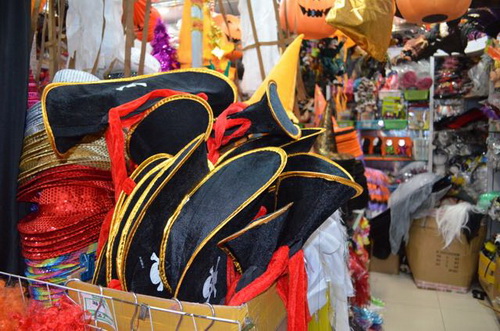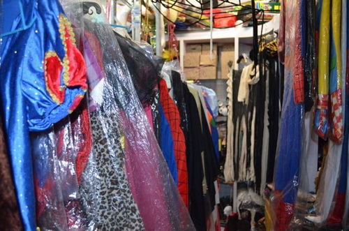 I was recently at Hongqiao Market doing research for the magazine when I stumbled upon a treasure trove of Halloween costumes. There’s a rather confusing collection of buildings there, all with slightly different names and hawking different wares. Most families know Tianle Toy Market as one of the places to buy toys and gifts, but there’s another place called Tianya Hongqiao Pearl Market just east of the main building. You can’t tell at first just by looking at the shopfronts full of vases and jade, but there’s one shop in the basement chock-a-block with Halloween costumes.