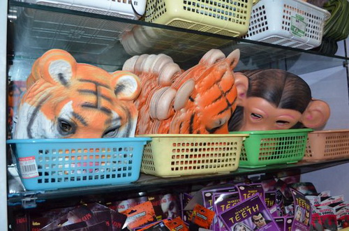 The kids’ costumes ranged from RMB 40-100. I saw superhero costumes, princess dresses, animal outfits, and "job" outfits (e.g. surgeon and chef). The adult costumes ranged from RMB 70-160 and included the usual selection of "sexy" costumes and standbys like vampires. Smaller items like masks and ears were cheap, starting from RMB 10-15.