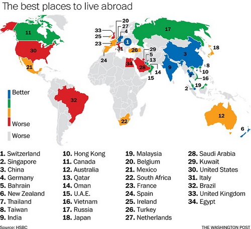 It’s great to be an expatriate in China, which has ranked third on a survey of over 100 countries conducted by HSBC in terms of compensation for expats. Although people here aren’t raking in quite as much as in Switzerland, where a quarter of respondents are making over USD 200,000, China can’t be too far behind, as it placed number one in the "economics" breakdown, a sub-category of the rankings.