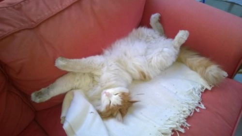 Breed: I am a beautiful long-haired yellow and white Turkish Van cat.