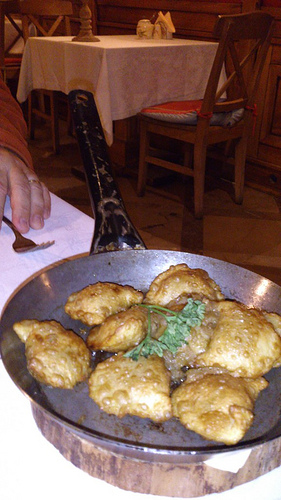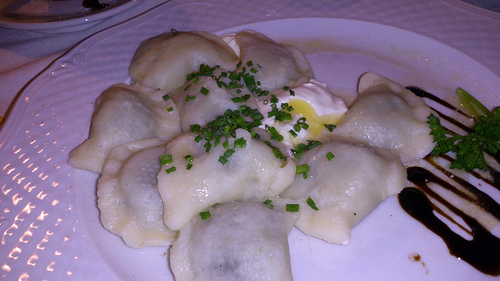 Coming from Western Pennsylvania, I have eaten a great number of pierogi in my life. The flavors we usually associate with these dumplings are potato, potato and cheese, and potato and sauerkraut–the way the struggling working class Rusyns made them when they came to Western Pennsylvania. In Kraków, we found new-to-us flavors, like chanterelle and, for Myles, pork.