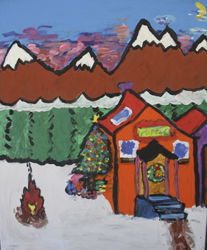 I painted this picture because I like winter and mountains! The road is for more people to drive on and see all the beautiful things around them.