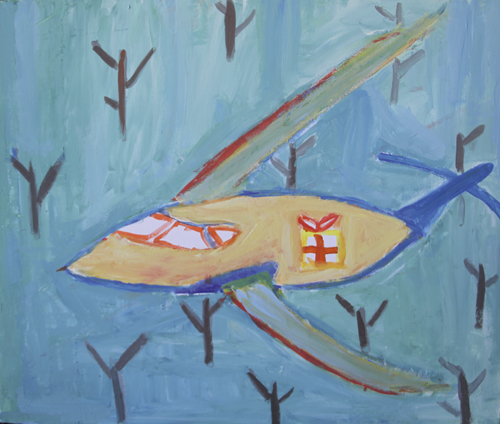 In the new century, Santa Claus has an airplane to bring presents to kids. I don’t think Santa Claus can fly to China with deer, so I want to give him an airplane.