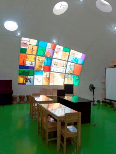The courtyard by the entrance of the gallery is very spacious and suitable for children to run about and play.