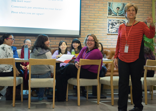 On November 21, 3e International School welcomed two guest speakers from the US for its Positive Discipline Day. Kay Nicholas, former principal of a Michigan elementary school, led a a three-hour workshop on conscious discipline. This award-winning classroom management program was created by Dr. Becky Bailey and presents a comprehensive set of brain research-supported skills to foster positive behavior in a family-like classroom environment. Sophia Garner, the other speaker, is a teacher experienced in implementing readers’ workshops with lower elementary students. She shared her training at Columbia University with 3e’s K-4 teaching team, composed of both local and foreign teachers. Both speakers immersed themselves in 3e classrooms for several days afterwards. This was the third time for Nicholas to work with 3e teachers on conscious discipline and it was the first China visit for Garner.