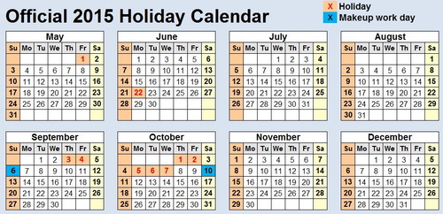 China’s State Council on Wednesday announced a three-day holiday set for September 3-5 to mark the 70th anniversary of the surrender of Japan and the end of World War II.