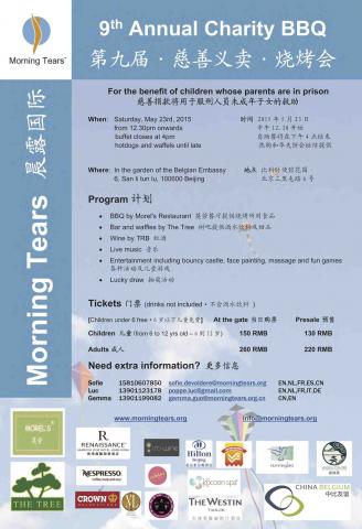 Tickets (drinks not included) cost RMB 150 for children at the gate, RMB 130 if bought in advance, and RMB 260 for adults at the gate, and RMB 220 in advance. For tickets or more information, contact the organization at info@morningtears.info or contact one of the organizers: Sofie at sofie.devoldere@morningtears.org, Luc at poppe.luc@gmail.com, or Gemma at gemma.guo@morningtears.org.cn.