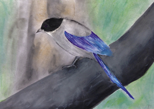 Helena Yu (age 14) is enrolled in the Art Lab Program at Blue Bridge International Education. She is in Grade 9 at Tsinghua International School (THIS). Helena is very interested in fashion design and wants to design clothes that represent her personal style. The watercolor illustration of the azure-winged magpie aims to represent the beauty of the bird’s natural colors. The grey gecko is drawn to show playful movement and the hog badger image is a high-contrast, stylized representation.