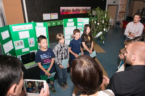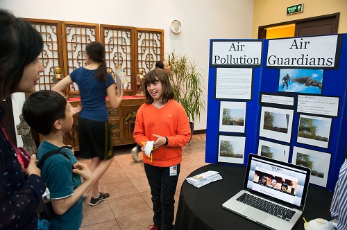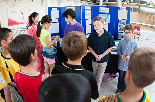 More than 300 people came to Western Academy of Beijing (WAB) on April 22 to listen as Grade 5 students presented the culmination of their learning in elementary xchool. Students in the International Baccalaureate’s Primary Years Programme (IB PYP) presented projects in which they are required to select a local or global issue and spend six weeks creating real-life solutions. Throughout the six weeks, students spent hours listening to guest speakers, identifying interests and passions, finding mentors, researching, taking action, finding solutions and then reflecting on their work. Two students made a video to profile all of their classmates’ different projects. Some of those projects included: “Protect the Oceans,” “Special Kids Special Care,” “Action on Global Poverty,” “Poaching of Endangered Animals in China,” and “Bully Busting Squad.”