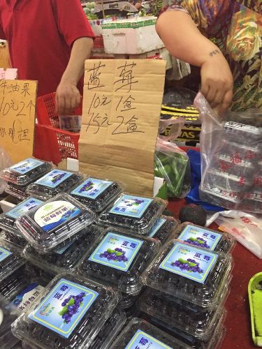 I ran into a friend of mine off to buy blueberries at a “secret” market. I was intrigued, so I tagged along. Just the night before I had done my weekly shopping at Sanyuanli and had bought a couple boxes of blueberries at RMB 15 each. My friend assured me I could get them for half that price at another place.