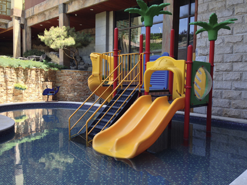 Children should avoid complete immersion and sit on the “jump seats” located on the side of the pool.