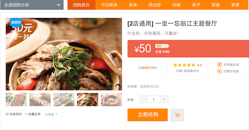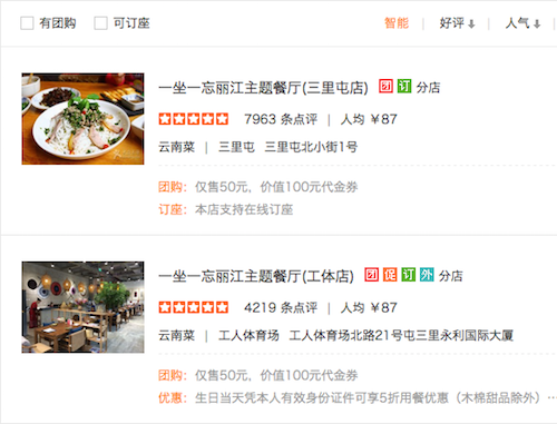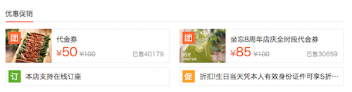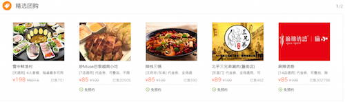 If you’re not set on a specific venue, another place to find deals is Dianping’s tuangou section, which looks something like this: