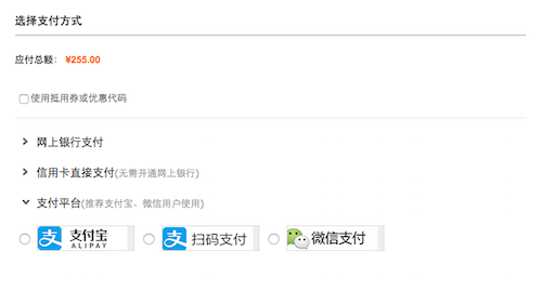 Once you log in, you’ll be able to see the payment options available. From top to bottom, they are: online banking (click here for instructions on setting that up), Chinese credit card, and other mobile payment platforms such as Alipay or WeChat Wallet.