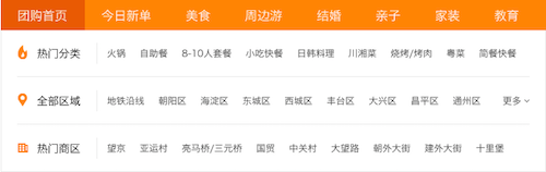 The middle of the page allows you to browse tuangou deals by: