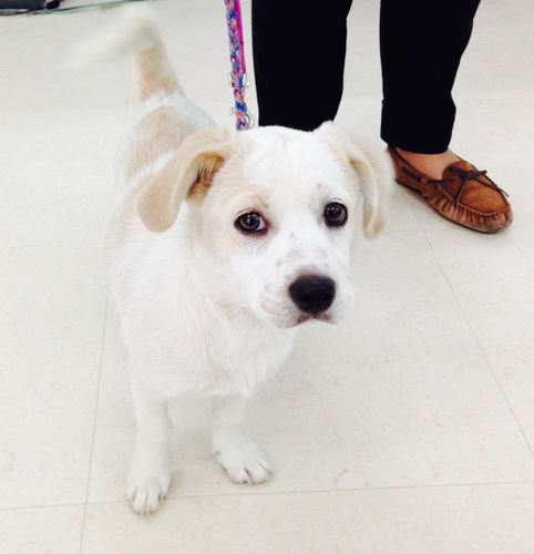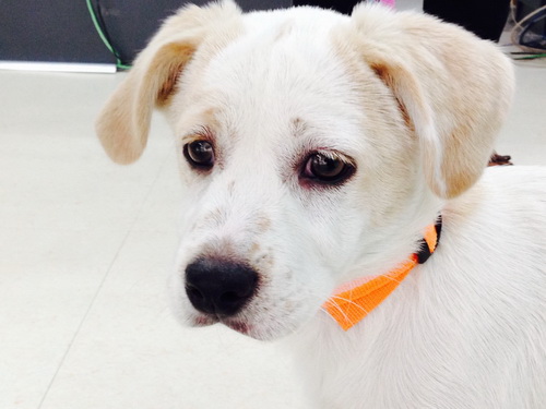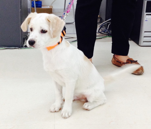 Background: I was abandoned in Wangjing and found my way to the front door of ICVS. I saw all these other dogs going in and out of ICVS on their daily walks and thought it was a fun place for dogs and would be a cool place to hang out. So I scratched at the glass door until they let me in. My family at ICVS has taken me in and cared for me as one of their own. I have my own private quarantine room and am enjoying yummy Royal Canin puppy food. I am a smart little puppy and will be your loving life-long companion if you would like to adopt me.