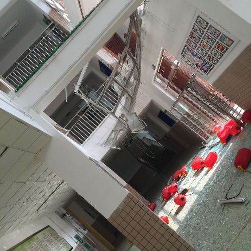 Hundreds of students were staying at the Maple Leaf International School campus dormitories, attending summer school there. Andrews began messaging students immediately to check that they were ok. “The school is a lot older, and perhaps not as protected by other buildings, so it sustained a lot more damage,” says Andrews. “The blast obliterated all the windows, the south facing windows have caved in, and some of the ceilings have collapsed.” Thankfully none of the students staying at the school’s dormitories were injured. Andrews walked to the school to check on the students, and witnessed the aftermath firsthand. The street was littered with glass, car windows were smashed, and she saw a man covered in blood who was unresponsive to her questions.