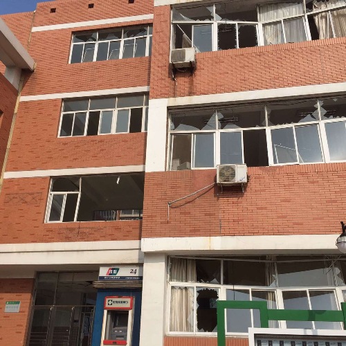External doors and windows blown inwards by the explosions