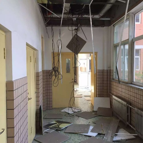 Damage to the facade of school buildings