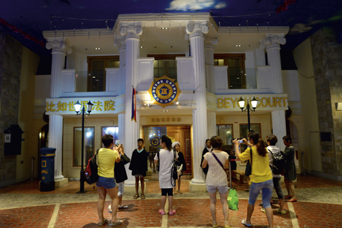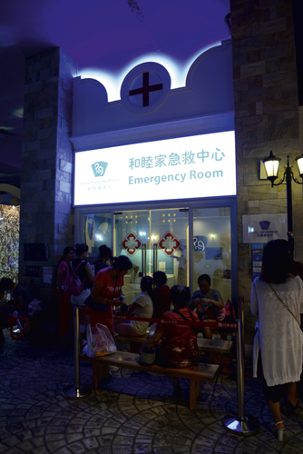 Parents aren’t allowed inside each job station and must content themselves with watching the kids through the window. Some jobs, like ambulance workers and public security officers, involve groups of kids marching in formation or rushing to the scene of an accident so that parents can follow behind and take pictures. There’s even a catwalk where young participants are coached on strutting and posing before being sent out into the spotlight.