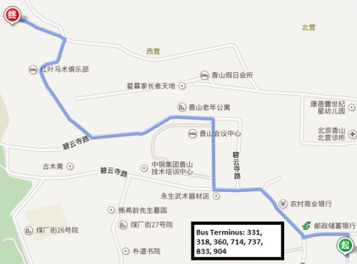 The website lists a comprehensive variety of public transport options to reach the center. On Saturday morning, I rode subway Line 4 to Xiyuan Exit A and jumped on Bus 331 to Xiangshan/Fragrant Hills.