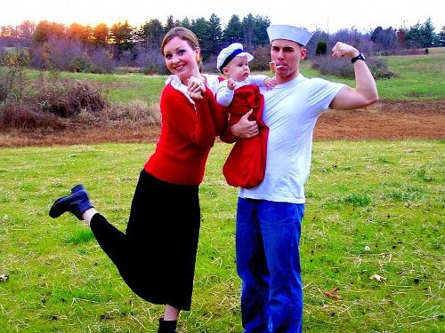 These mostly homemade costumes, including the raggedy-Ann and Popeye themed costumes pictured above, prove you just need a little imagination to transform ordinary clothes into a costume.