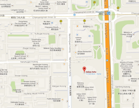 Zaha Hadid’s famed Galaxy Soho/alien termite mound is located just a stones-throw south of Chaoyangmen Subway – if you’re coming via subway take the southwest exit and head straight down the East Second Ring Road. Here, have a bangin’ map: