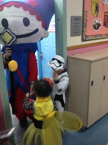 Echo will be four in January. We’re almost never in Canada in the fall, so besides occasionally putting her in costumes until she itched herself out of them, Halloween hasn’t been given much airtime in our household. So this year, at such a big event – put it this way: her eyes were wide, round lollipops.