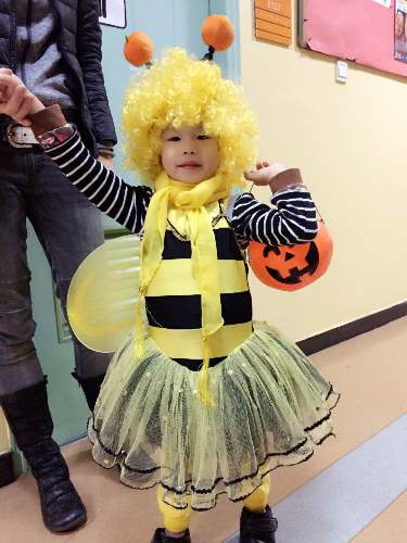 There’s nothing like candy to get a kid to wear a wig. Even if for only five minutes, my little bumblebee was the cutest (and maybe the only?) bumblebee in attendance at this year’s first session of the 9th beijingkids Halloween Party on Sunday, October 25 at the Canadian International School of Beijing. My 22-month old son was one of dozens of little pumpkins, but he didn’t mind. Unique costume or not, I was really there for my daughter. (Editor’s note: Click here for details on how to book tickets for the party at Keystone).