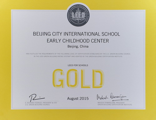 Shortly after the beginning of the 2015-2016 school year, the Beijing City International School (BCIS) Early Childhood Center (ECC) received some highly anticipated news. The ECC has achieved a globally recognized high level of eco friendliness and green construction by being LEED Certified to Gold Standard; the first pre-school facility in Beijing to receive such an accolade. But what is LEED? And why is it so significant that the BCIS ECC has attained it?