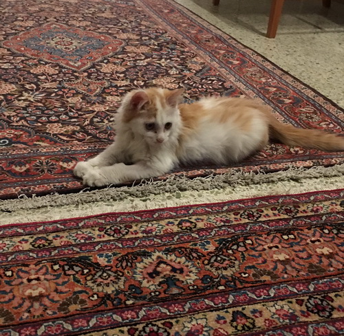 Breed: Kouchoulou is a beautiful long-haired orange and white kitten.