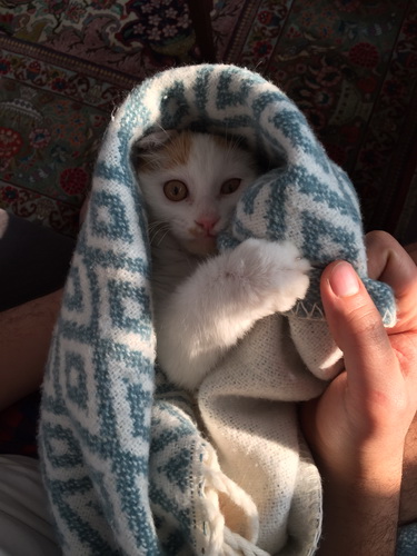 Sex & Age: Kouchoulou is a male cat, about 3-4 months old.