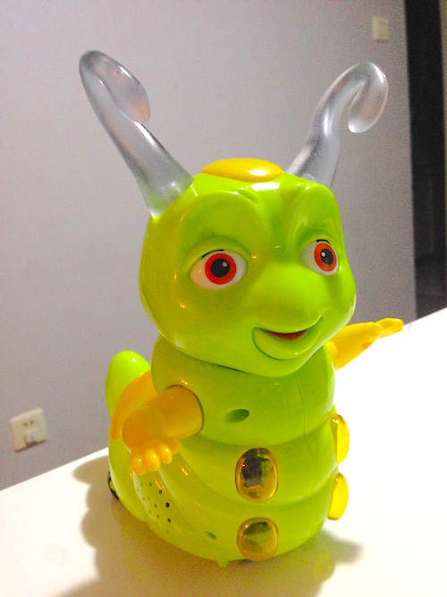 Lately, my kids have been given too many toys that make noise. They love them, of course. My son’s favourite is a swirling plastic glowworms on wheels that sings eardrum-piercing Chinese songs. My daughter favours the fuzzy fake puppy dog that wiggles his mechanical bum and moves forward all while barking a supposedly cute melody.