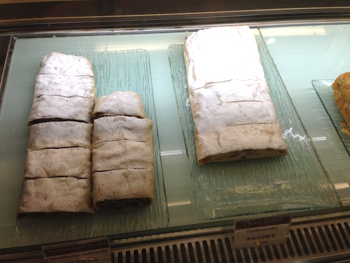 Before leaving, I had a look at the strudel. I’m not German by decent, but this looks like authentic strudel to me. I didn’t buy any, though. Not this time. Maybe in the spring I’ll be more adventurous and emerge with more than just cheesecake! Until then, I am heading home for some comfort food.