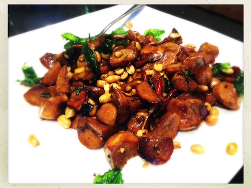 I did have a few quibbles with the class. The biggest issue was that we didn’t have enough to eat. Between the ten of us, we had to share four modest servings of pineapple rice (the equivalent of two pineapples), two plates of stir-fried king oyster mushrooms with mint leaves, and two plates of pan-fried chicken. There was plenty of rice to go around, but it wasn’t enough to make us forget the insufficient amounts of food.