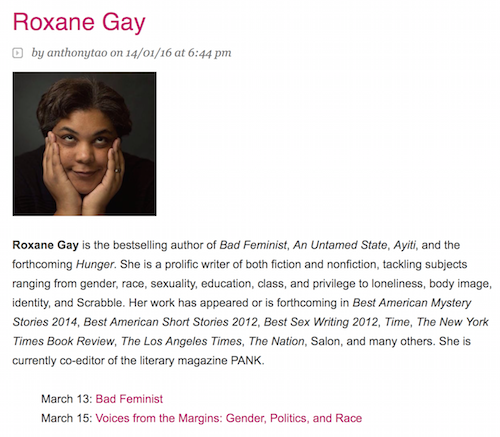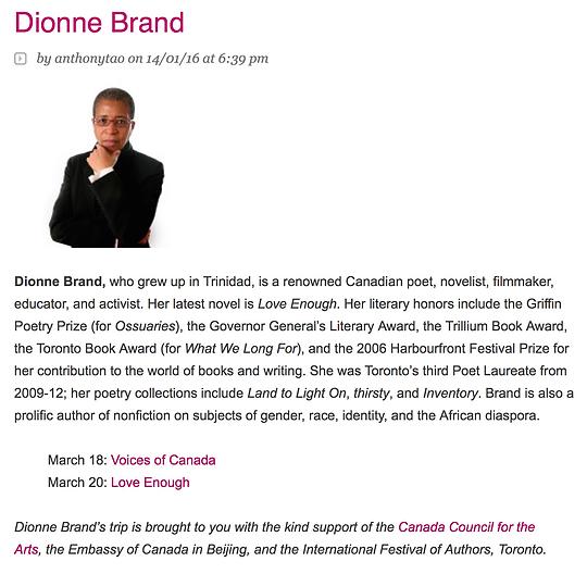 When I look at the line-up this year of authors who will be presenting at The Beijing Bookworm Literary Festival, I am especially excited about long-time poet from Toronto (my hometown), Dionne Brand, whose work is exceptional; and Roxane Gay, a writer whose work I have only just encountered this year. Gay’s feminist clarity brings me words of support much needed since relocating to this persistently sexist culture. I still love you, China, but regarding feminism: catch up already!