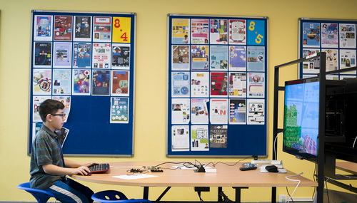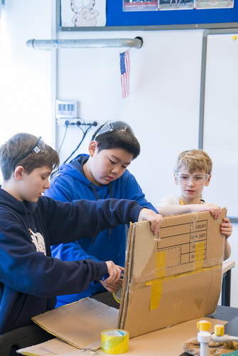 Such were my thoughts when I visited International School of Beijing’s (ISB) One Day, short for “One Day, One Goal, One Project” on project day, which is when the middle school students prepare their exhibits for Innovation Day, March 25. Students were scattered about the hallways, huddled in small groups in classrooms, or sprawled on the floors with their MacBook Pros. I saw students making skateboards, building robots, painting, carving, sewing, and even playing Minecraft on a homemade computer! Best. School. Tour. Ever.