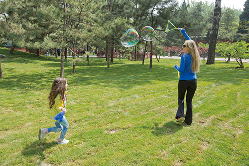 Liza Maksymchuk (Ukraine) and her husband Chris Solomon (Australia) have been living in Beijing for ten years. They have a 5-year-old daughter called Nadiya who attends Beijing City International School (BCIS). One of the family’s regular haunts is Ritan Park, which they visit nearly every weekend. Maksymchuk says she discovered the park through beijingkids magazine. “I loved the English name, which sounded magical – ‘Park of the Temple of the Sun,’” she says. Recently, we had the opportunity to take photos of the family with some very special guests: grandparents Sue and Brian Solomon, who were visiting from Australia.