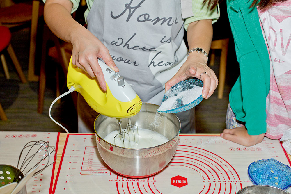 Starting from the end of October, the winter holidays can bring in one sugar crash after another, especially when even our hot chocolate drinks are packed with sugar. Miyee Woon of Miyee美颐@家KITCHEN shared with us a recipe that’s light on sugar for a dessert alternative that won’t send you or your kids down a sugar slide. Woon’s daughter Carol, age 9, attends Fang Cao Di International School Section in Grade 3 and joined Woon to make these sweet rolls at the café in Funwork (CBD area), where Woon and Perlita Pengson founded R3 Discovery, a place for children to delve into reading.