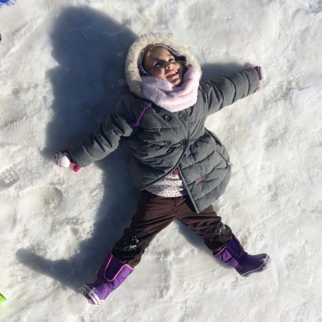 The snow is getting pretty hard in some areas so I had to be careful not to slip and slide too much. I also wished we had brought a rain suit or a water proof snow suit for our daughter to wear over her outfit since her pants got pretty wet from rolling around in the snow. We spend a great 3 hours at the snow park, the sun keeping us warm and energized.