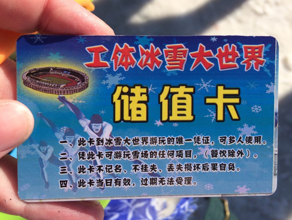 When we left we returned the card and received RMB 150 back from the ticket booth, meaning we had spent a total of RMB 150 for a afternoon in the snow park. An icy good deal.