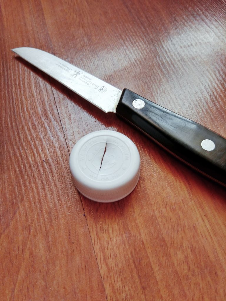 3. Cut a slit with a knife (adult help needed). Push your finger into the slit to make it a tad bigger for receiving coins.