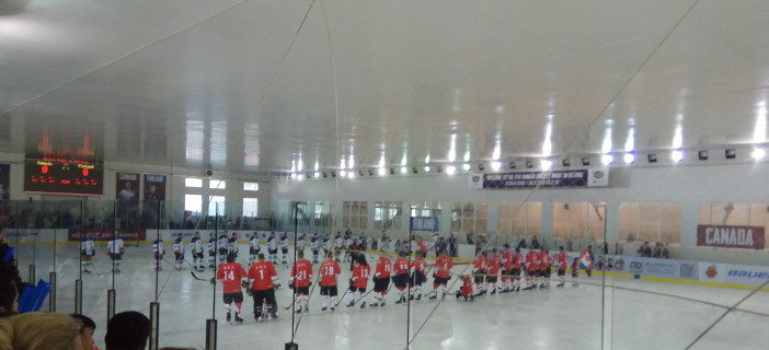 The event, at the Hokay Ice Arena, has now been running for six years, and features games between local league players representing their countries or regions. A commitment earlier in the day meant we missed the match up between the US and the World (the US won convincingly), but arrived in time for the second game at 5pm, between Canada and Finland.
