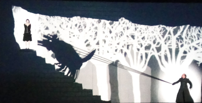 Papageno is the main comic figure, and Philip Meierhoefer made the most of the opportunities offered, aided by a charming digital cat. Even the relatively sparse preview audience broke into belly laughs when his magic bells caused a chorus line of wolves to start doing the can-can, complete with stockings and garters.