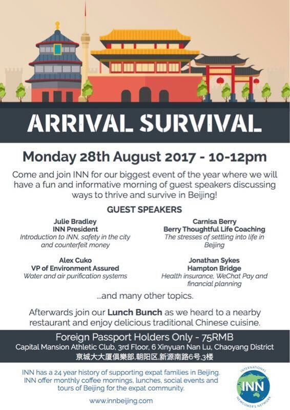 They will once again host their annual Arrival Survival on Monday, August 28th from 10am-12 noon at Capital Mansion. Through these Arrival Survival events and their monthly coffee mornings in Sanlitun, you will not only be connected with others in the same boat but also receive invaluable information to help you better get to know your new host city.