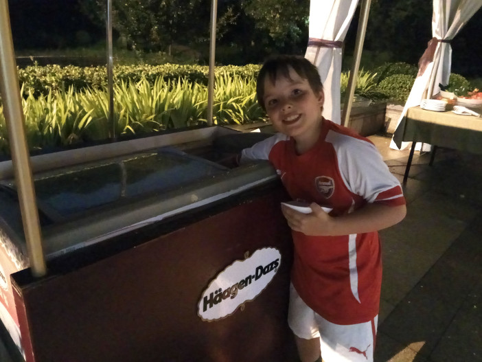 For dessert, there was a choice of four flavors of ice cream: vanilla, green tea, strawberry and a truly intense chocolate. My boys were less than keen on the green tea variety, but being allowed to scoop their own ice cream was the highlight of the night for them.