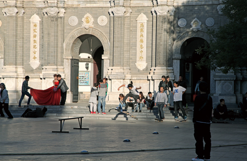 Wangfujing has its own subway stop at the southern end of Wangfujing Dajie by the Malls at the Oriental Plaza. From the subway stop, head north along Wangfujing Dajie until you reach St. Joseph’s Cathedral (1) between Baishu and Ganyu Hutong. This beautiful church has been torn down and rebuilt countless times, and it is one of the few rare historic churches that remain in Beijing. Its small outdoor square is often an unofficial stage for aspiring hip-hop dancers and skateboarders; kids are certainly free to join in the fun. At night, visitors can also admire the floodlights that bathe the church in a soft glow.