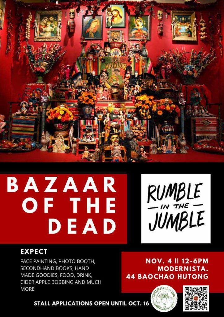 The most eclectic bazaar in Beijing is back with a Day of the Dead theme! Expect face painting, secondhand books, photo booths, and great vendors in abundance. This is great for those families out there that don’t mind a cultural and consumer experience that is a little on the macabre side. The market is located at Modernista and will go on from 12-6pm.