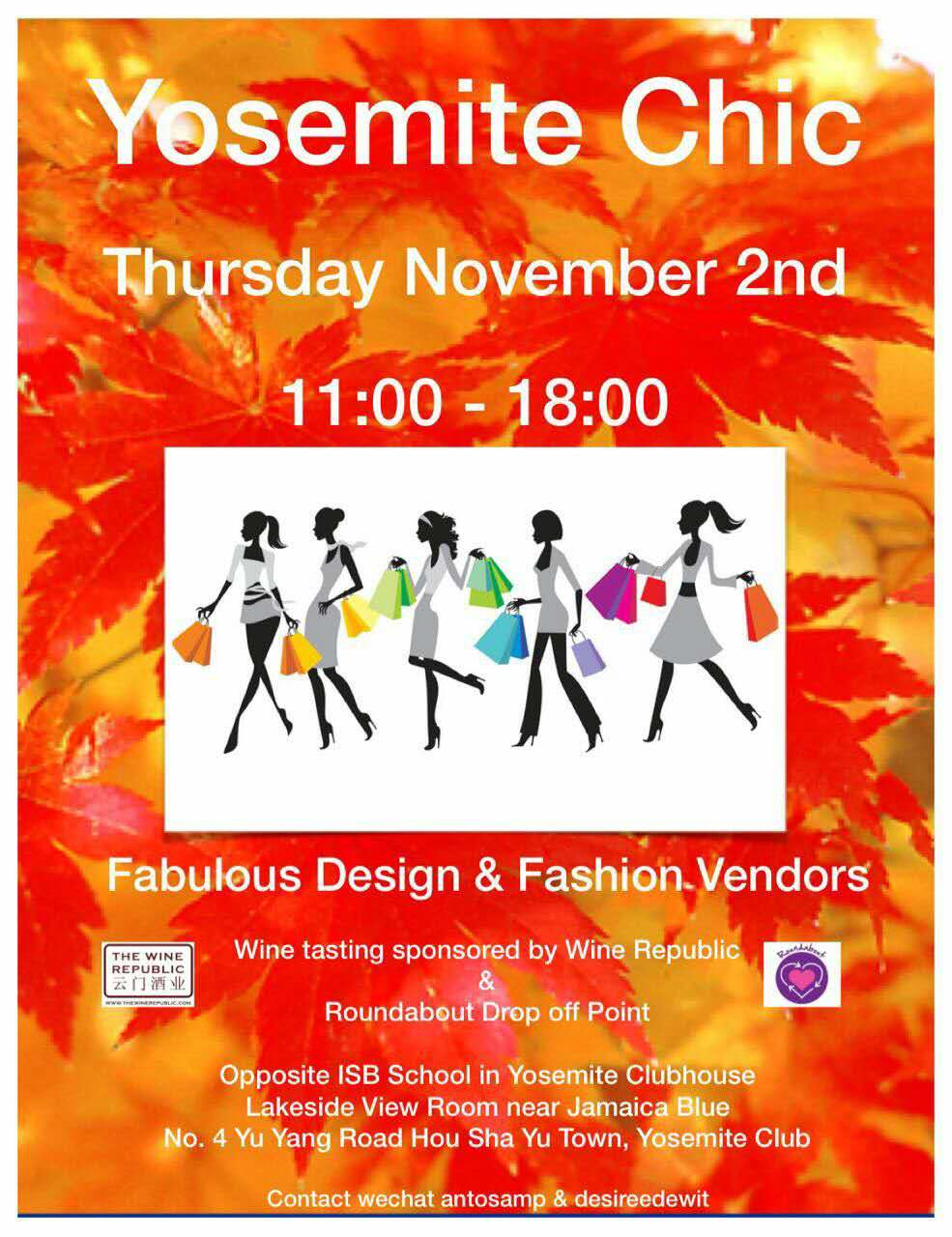 Yosemite Chic Bazaar will welcome fashion and design vendors. This fair supports the charities: Roundabout, Sew Gorgeous, Love & Hope and Starfish, these charities will also be on the market with our selection of designer brands.