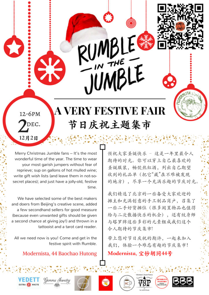 50 RMB Fee, register in advance by scanning the QR code, December 1, 3-7pm at the British Ambassador’s Residence.